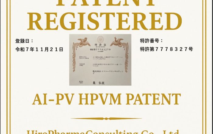 HiroPharmaConsulting® Co., Ltd. (CEO: Hirotsugu Atsumaru) is pleased to announce that its innovative validation method for AI-enabled Pharmacovigilance (PV) systems—known as the HiroPharma Validation Method (HPVM)—has been officially granted a patent by the Japan Patent Office.